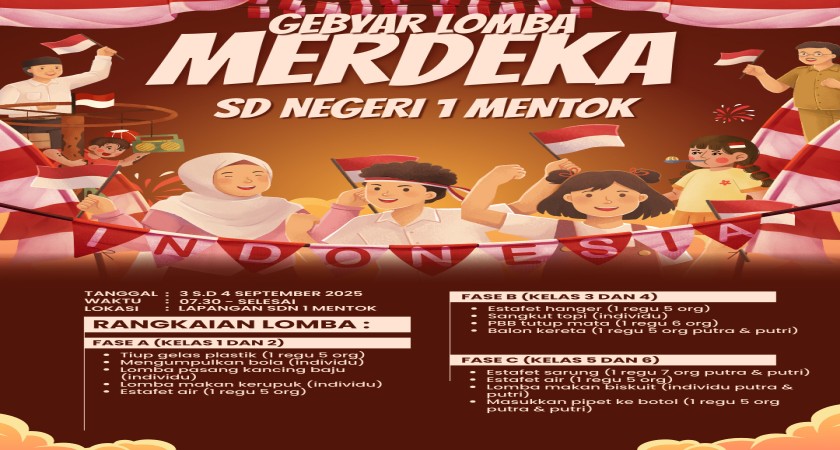 Pada hari Kemerdekaan Indonesia yang ke-80 pada tahun 2025 ini. SDN 1 Mentok mengadakan perlombaan. Perlombaan ini dinamakan "Gebyar Lomba Merdeka SDN 1 Mentok". Perlombaan diikuti seluruh murid SDN 1 Mentok dari kelas 1 sampai kelas 6. Semangat dan antusias murid, guru dan orang tua pada perlombaan ini sangat besar.